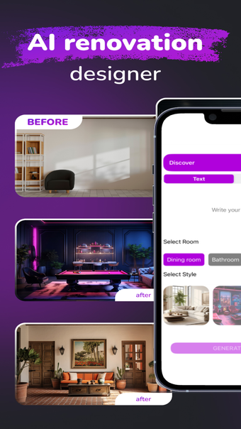 이 앱은 캡처한 공간의 즉각적인 변화를 제공할 뿐만 아니라, 완벽한 조합이 발견될 때까지 다양한 스타일로 실험할 수 있게 합니다. 사용자는 자신의 디자인을 저장하고 다른 사람들과 공유하여 추가적인 영감을 얻을 수 있습니다. 사용자 친화적인 인터페이스와 혁신적인 기능을 갖춘 AI 디자인 룸: 홈 데코는 모든 사람이 인테리어 디자인을 쉽게 접근할 수 있도록 합니다.